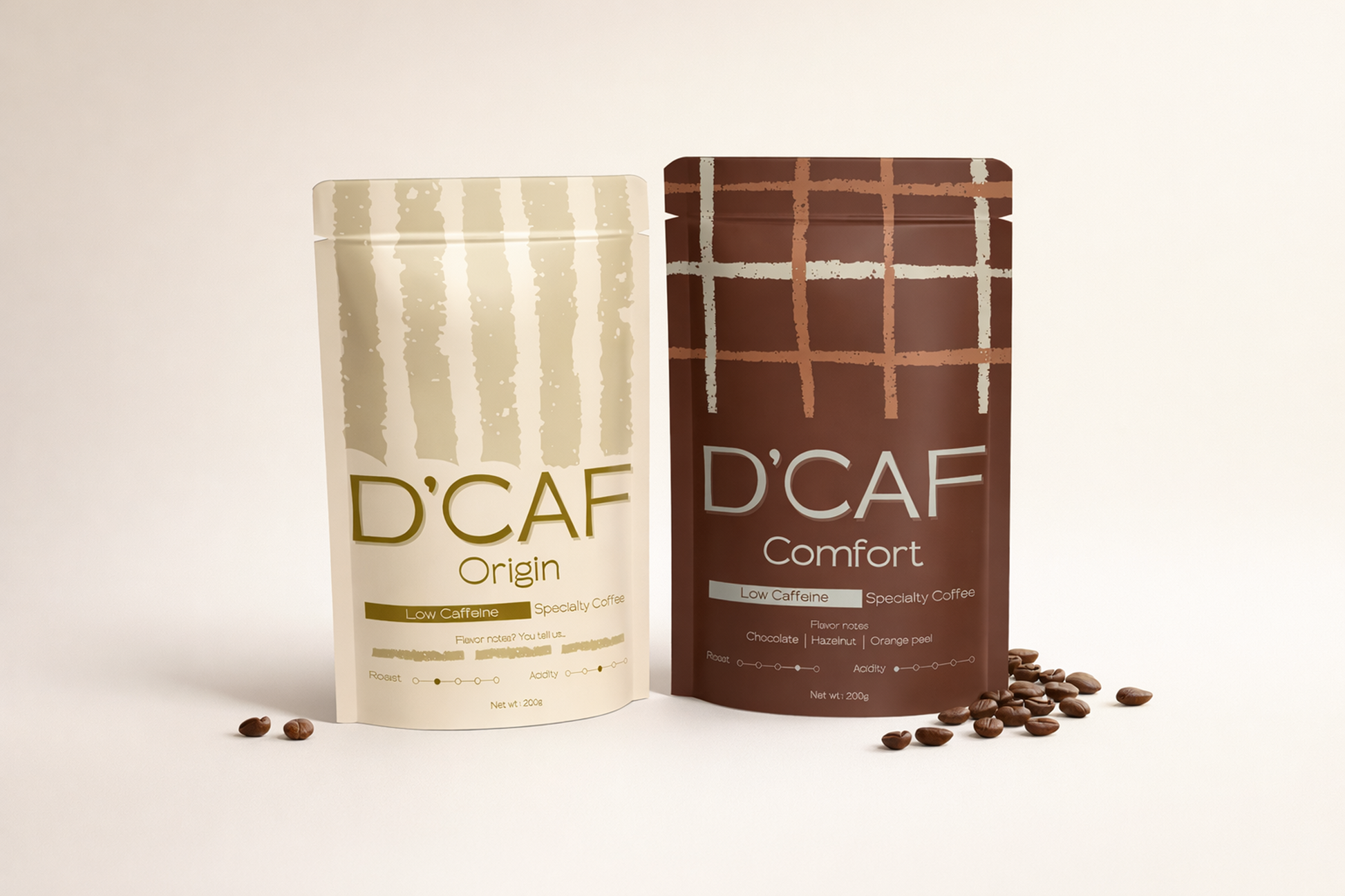 D'CAF coffee is regular coffee that has had ~70% of its caffeine removed while keeping the natural flavour compounds and antioxidants intact. Learn more about D'CAF.
